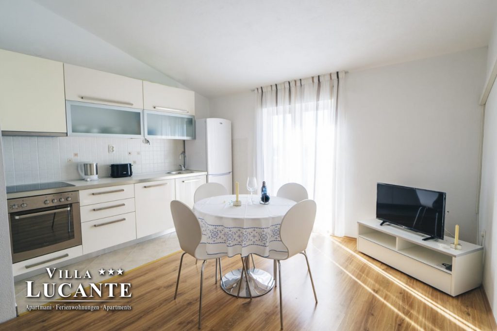 • 1 große Wohnküche – moderne Einrichtung • 1 großes Schlafzimmer (ca. 20 qm) • 1 Bad, Duschwanne, WC, Waschmaschine • Diele • großer Balkon, Meeresblick (West) • Swimmingpoolnutzung inklusive